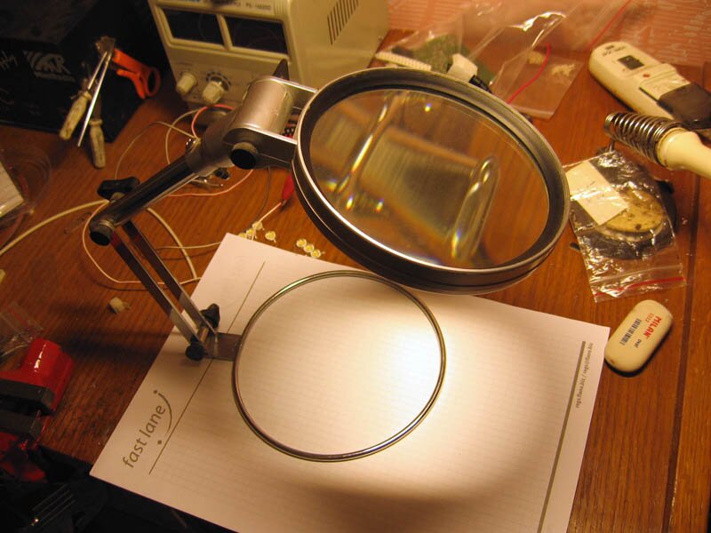 Самодельная светодиодная лампа снабжена увеличительным стеклом, и предназначена для комфортного мелкого монтажа и разборок с миниатюрными радиодеталями — многие радиолюбители знают, что на некоторых SMD-деталях трудно разглядеть маркировку даже под увеличительным стеклом. Наличие качественно рассеянной подсветки значительно улучшает чтение маркировки, и упрощает визуальный поиск дефектов в электронных приборах. Коротко характеристики лампы: